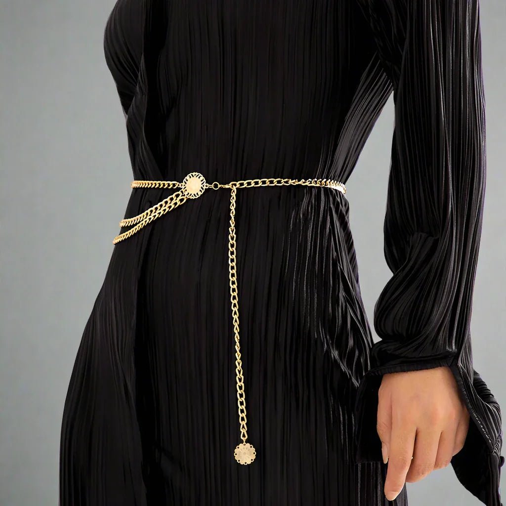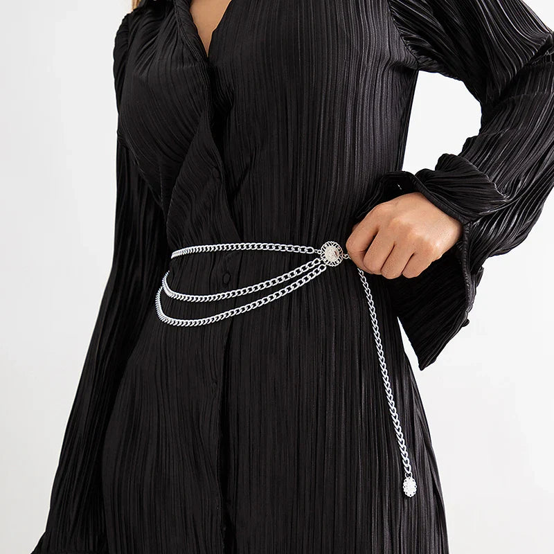 het ontwerp van deze metalen taille-ketting is zeer modieus, de verschillende kledin